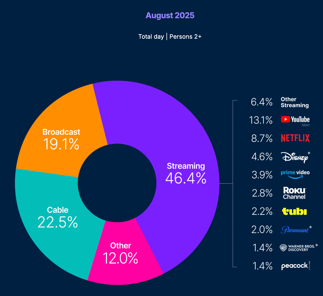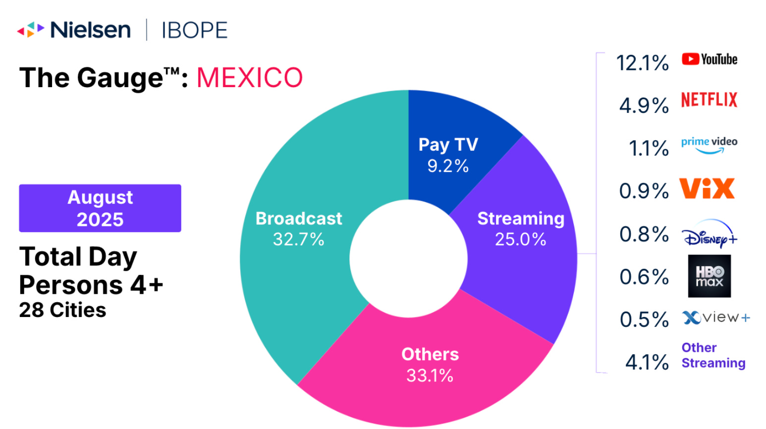 De acuerdo al Nielsen Gauge Report de agosto en Estados Unidos, Netflix está 4.4 puntos porcentuales por debajo de YouTube.