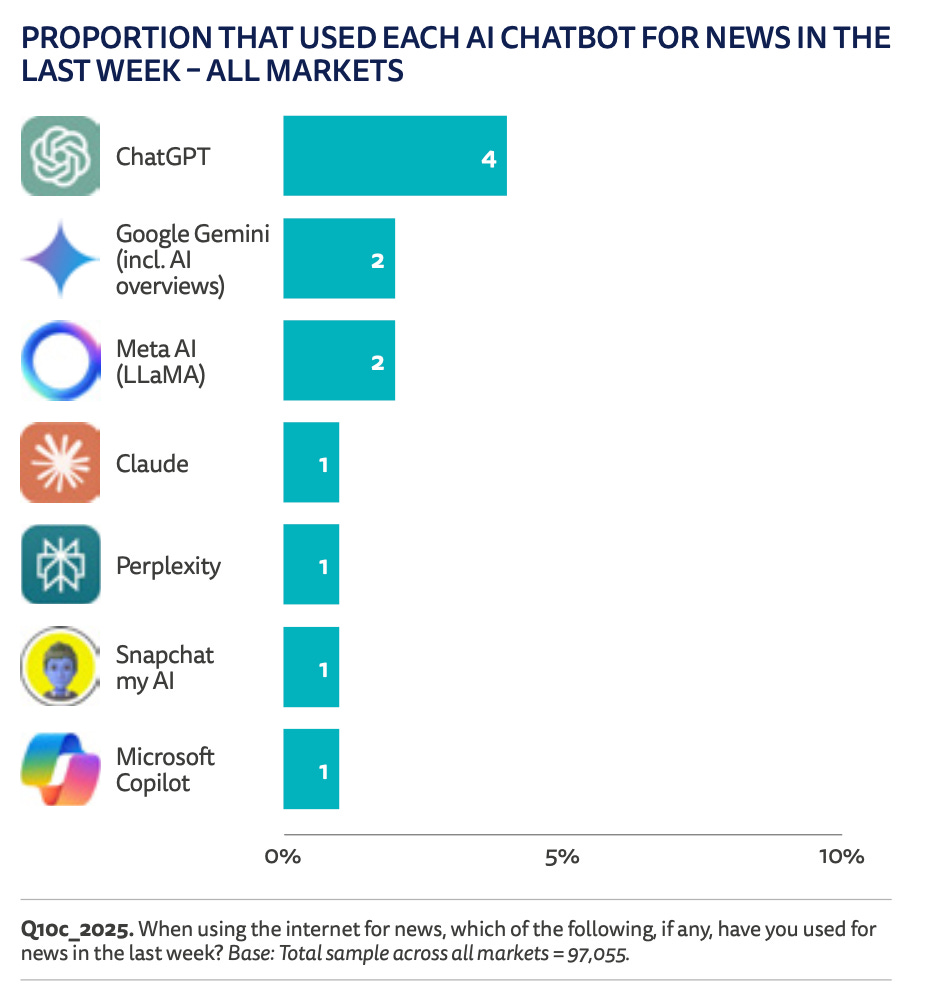 Disrupción consumada: los chatbots son la nueva fuente de información (Digital News Report 2025)