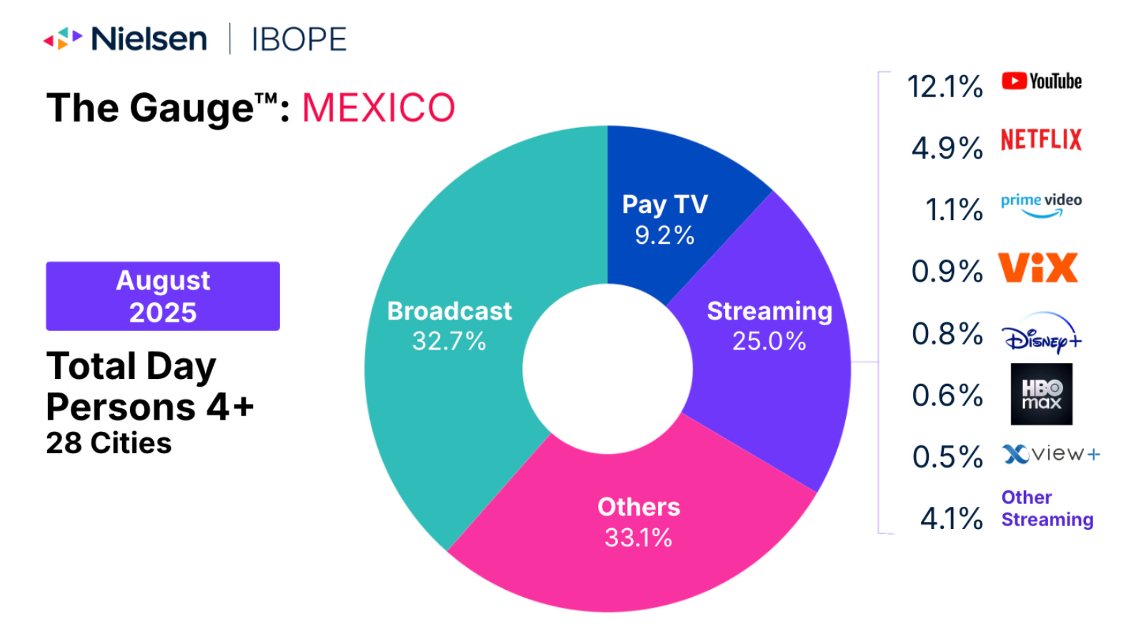 De acuerdo al Nielsen Gauge Report de agosto, Vix está un decimal por arriba de Disney+ en total de minutos vistos.