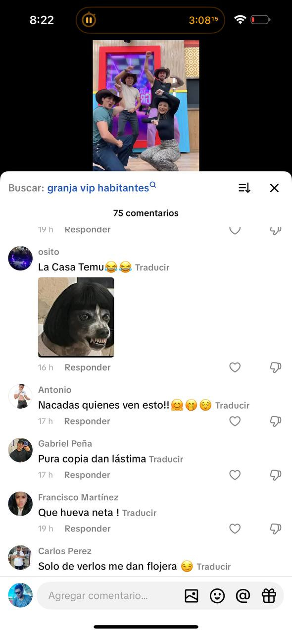 Aquí, por ejemplo, comentarios en videos de creadores de TikTok que permanecieron por 24 horas en La Granja VIP.