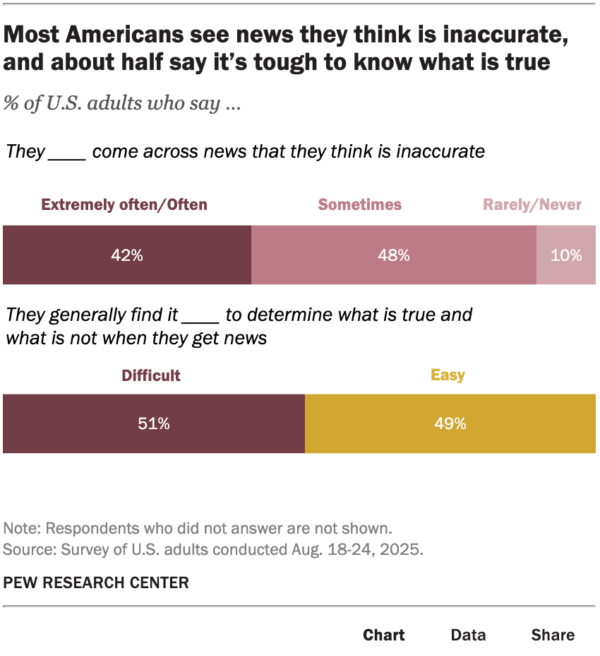 Un 43% afirma encontrarse con noticias inexactas frecuentemente.