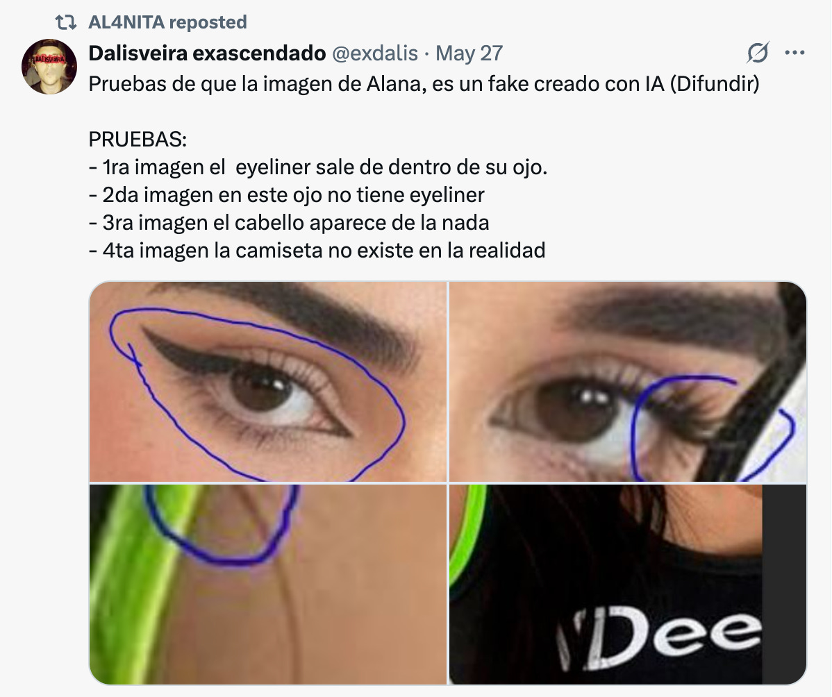 Como ejemplo, la supuesta imagen sexual que muestra a Alana Flores, creadora de contenido mexicana, practicándole sexo oral a un hombre que en la mitología de las redes o es su novio actual, el futbolista del América Sebastián Cáceres, o Westcol, streamer colombiano.