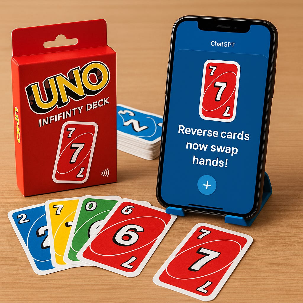 En el mismo sentido, se imaginaron el tradicional juego de UNO con tarjetas dinámicas que cambian las reglas en cualquier momento.