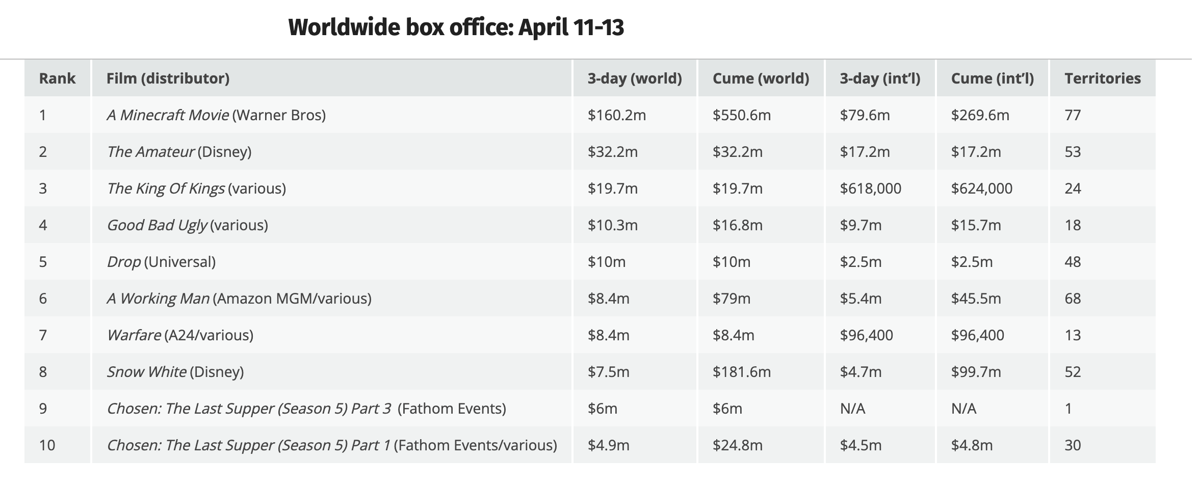 La recaudación de la película de Minecraft marcha como sigue.